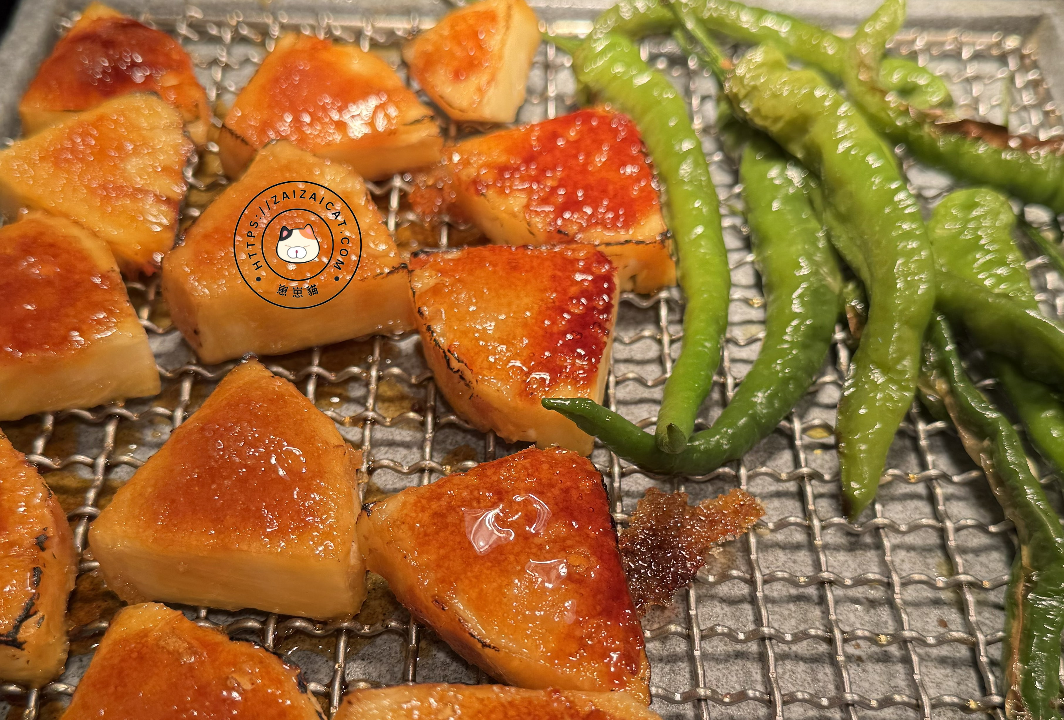 ▲炙燒焦糖鳳梨(左) 糯米椒(右)