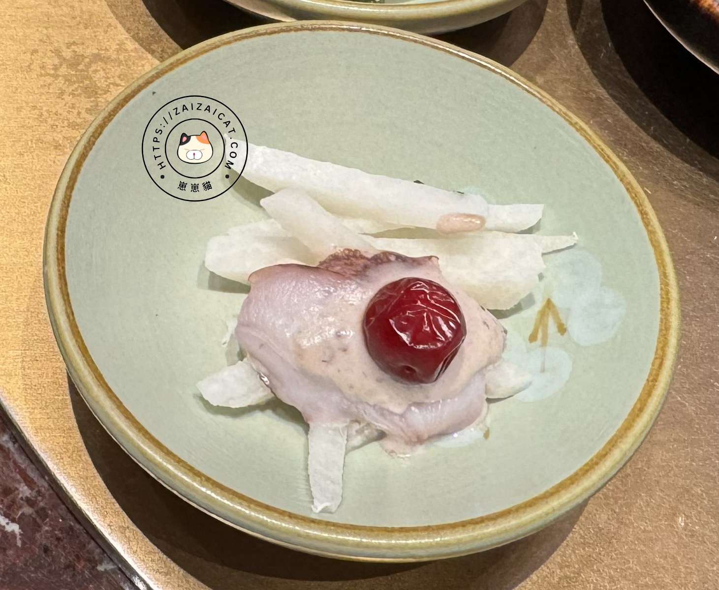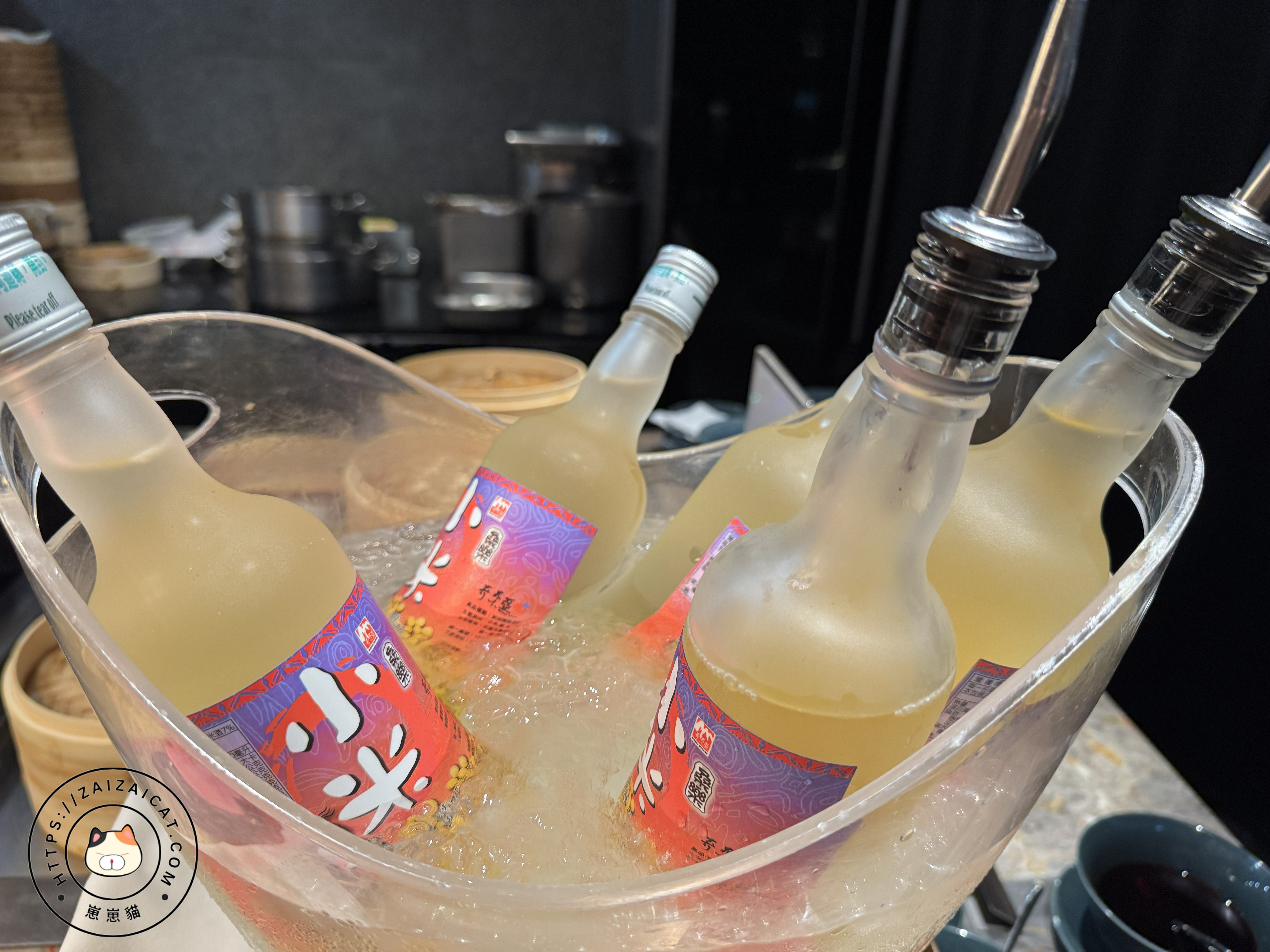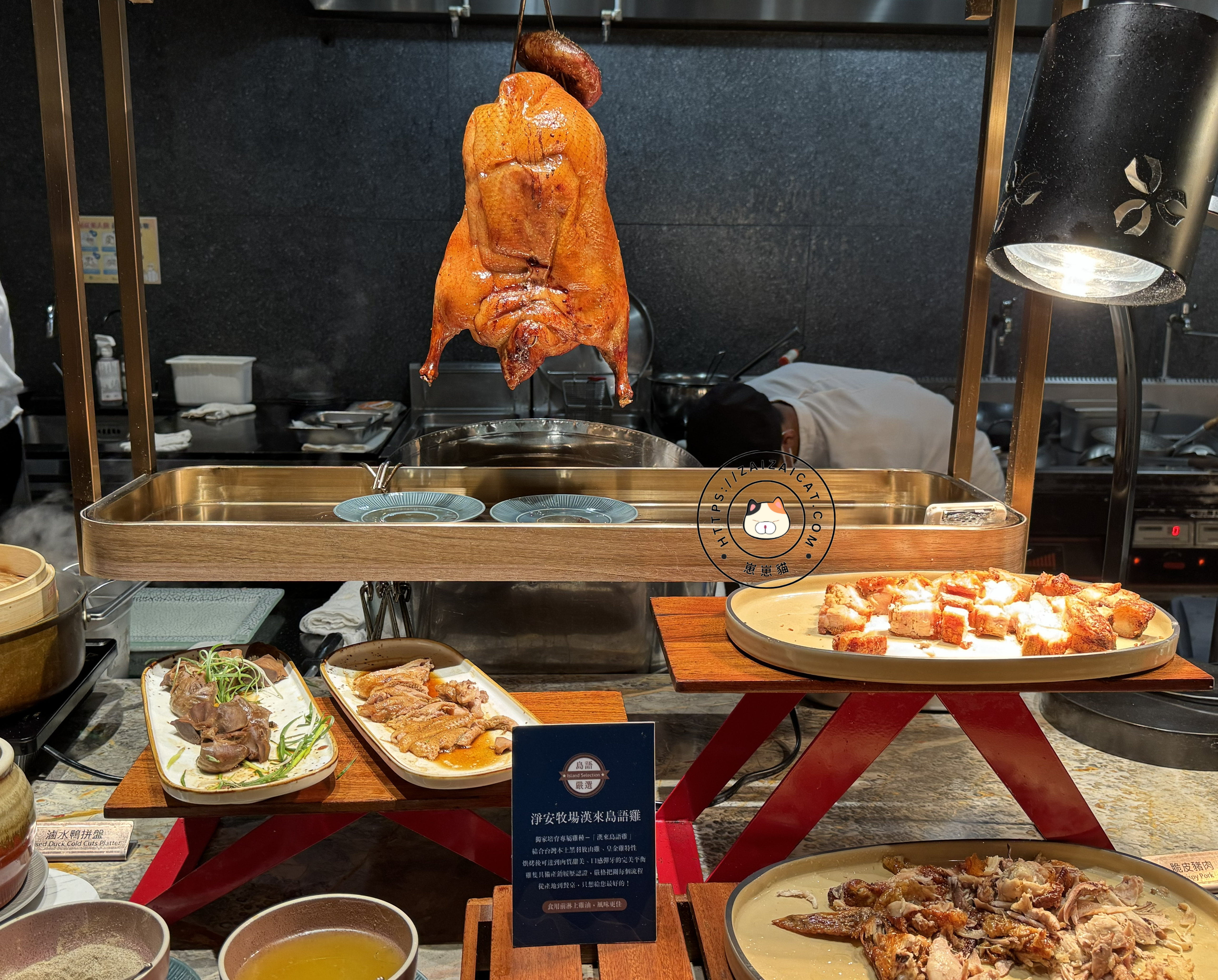 這區必吃的有來自淨安牧場漢來島語雞- 手撕甕窯雞🐔,雞肉🍗沾點雞油或特製胡椒粉,香氣立刻衝上來,超級涮嘴 🤤。再來就是宜蘭櫻桃鴨🦆,片皮櫻桃鴨真的超犯規,鴨皮烤得酥酥脆脆,真的會一口接一口完全停不下來 😍。必吃的還有現炸的長春捲,春捲內餡包著蝦段、魚漿和炒過的大蒜,外皮脆到會「卡滋」作響,現做要等一下但真的超值得 👏。除此之外還有脆皮燒肉🥩 、鮑魚燒賣、漢來福園餐廳的招牌東坡肉、梅子雞,以及其他多道中式熱菜,也都很不錯。 然後這區是搭配台灣小米釀🍶 ,甜甜的、冰冰涼涼的,清爽又解膩 💕。還有可以跟師傅點燙青菜、鵝肉麵或米粉,燙青菜淋上肉汁,超級棒👍。