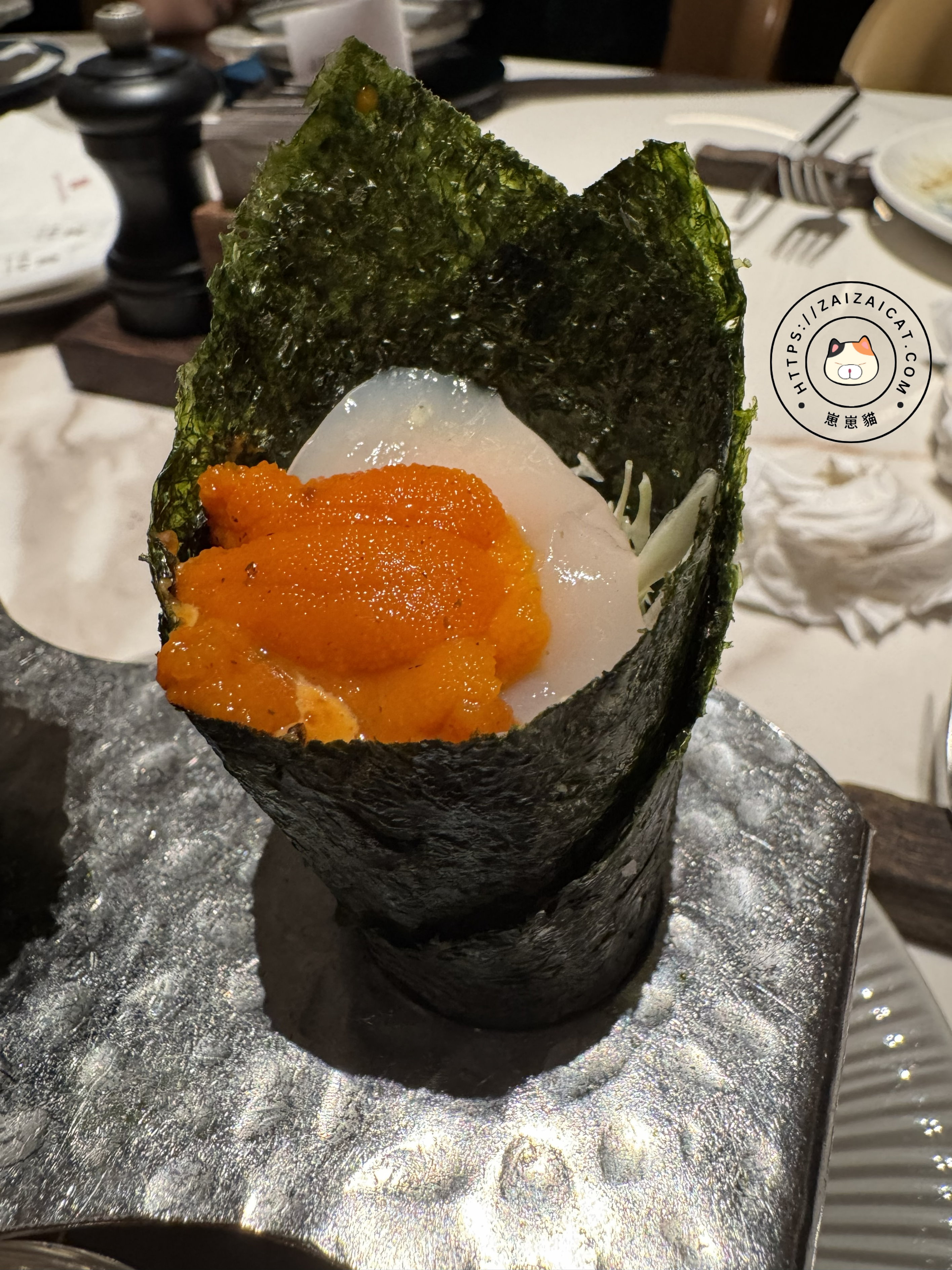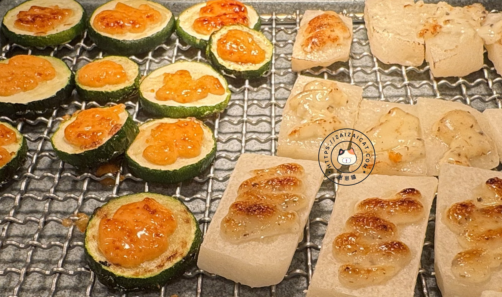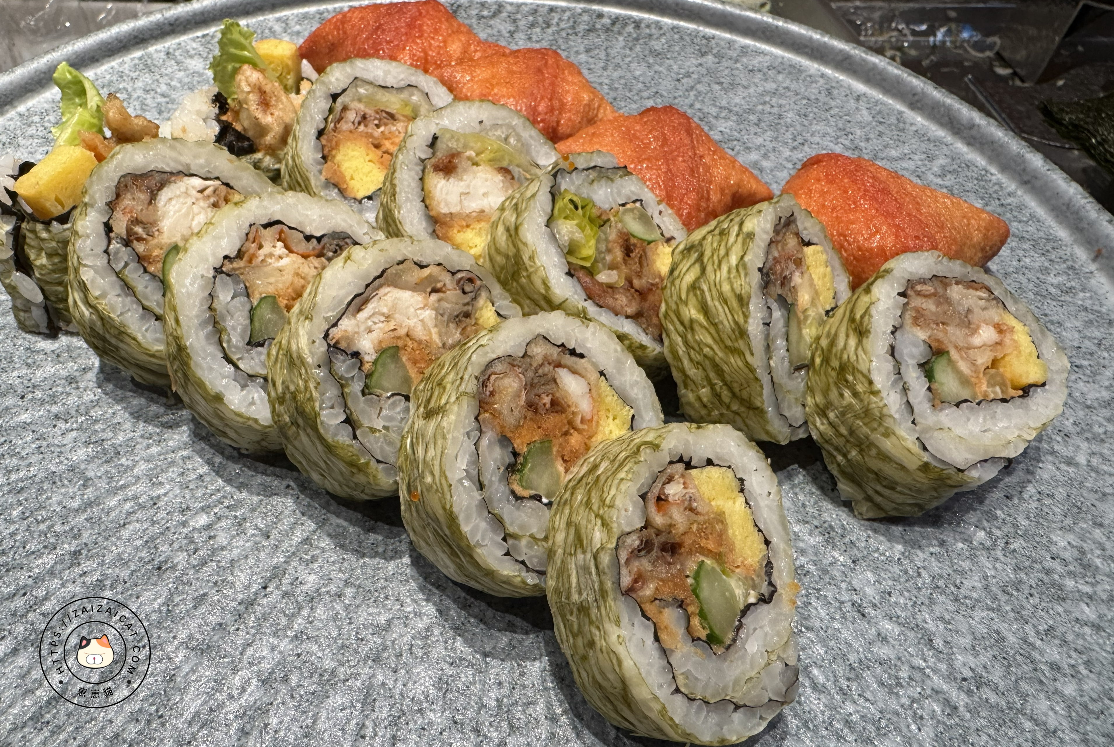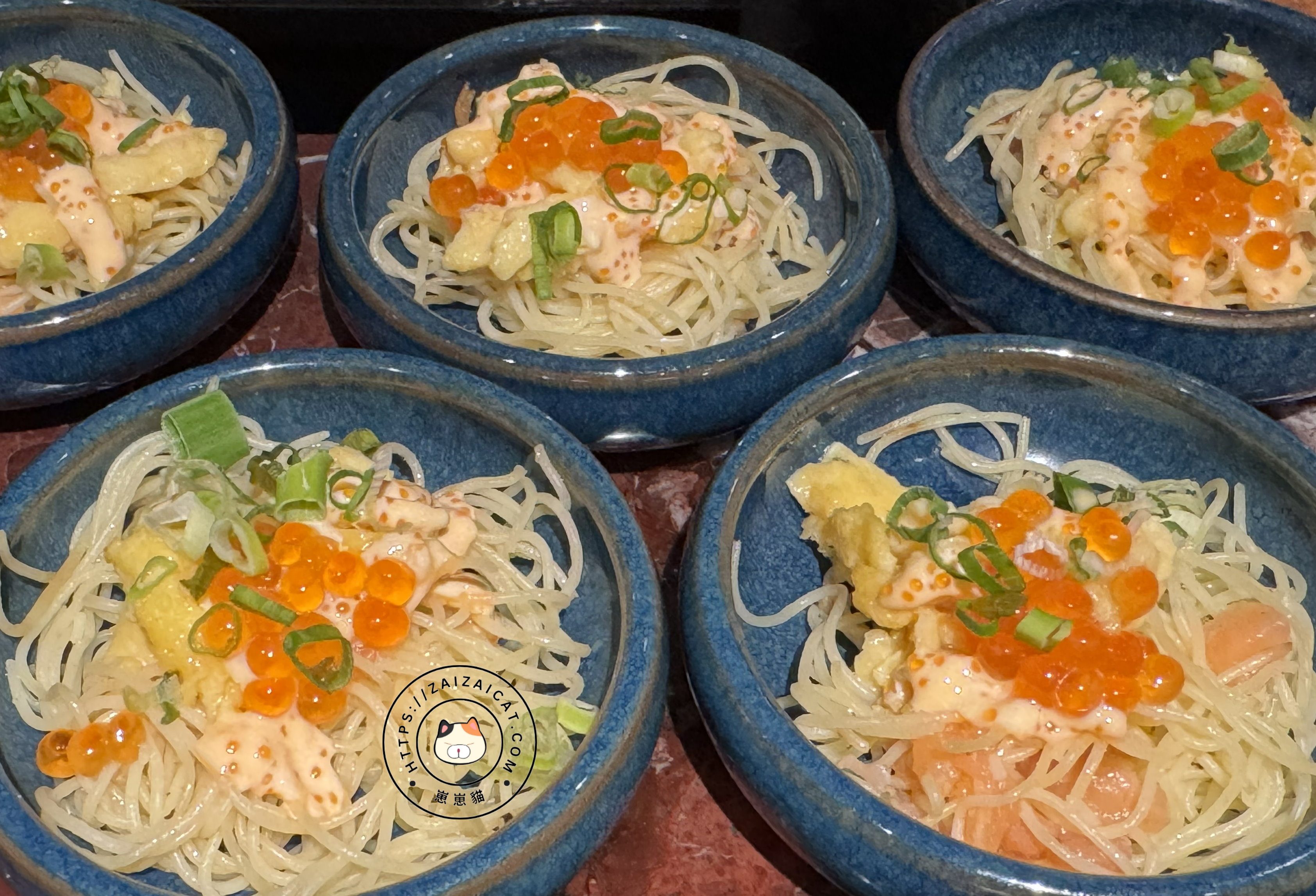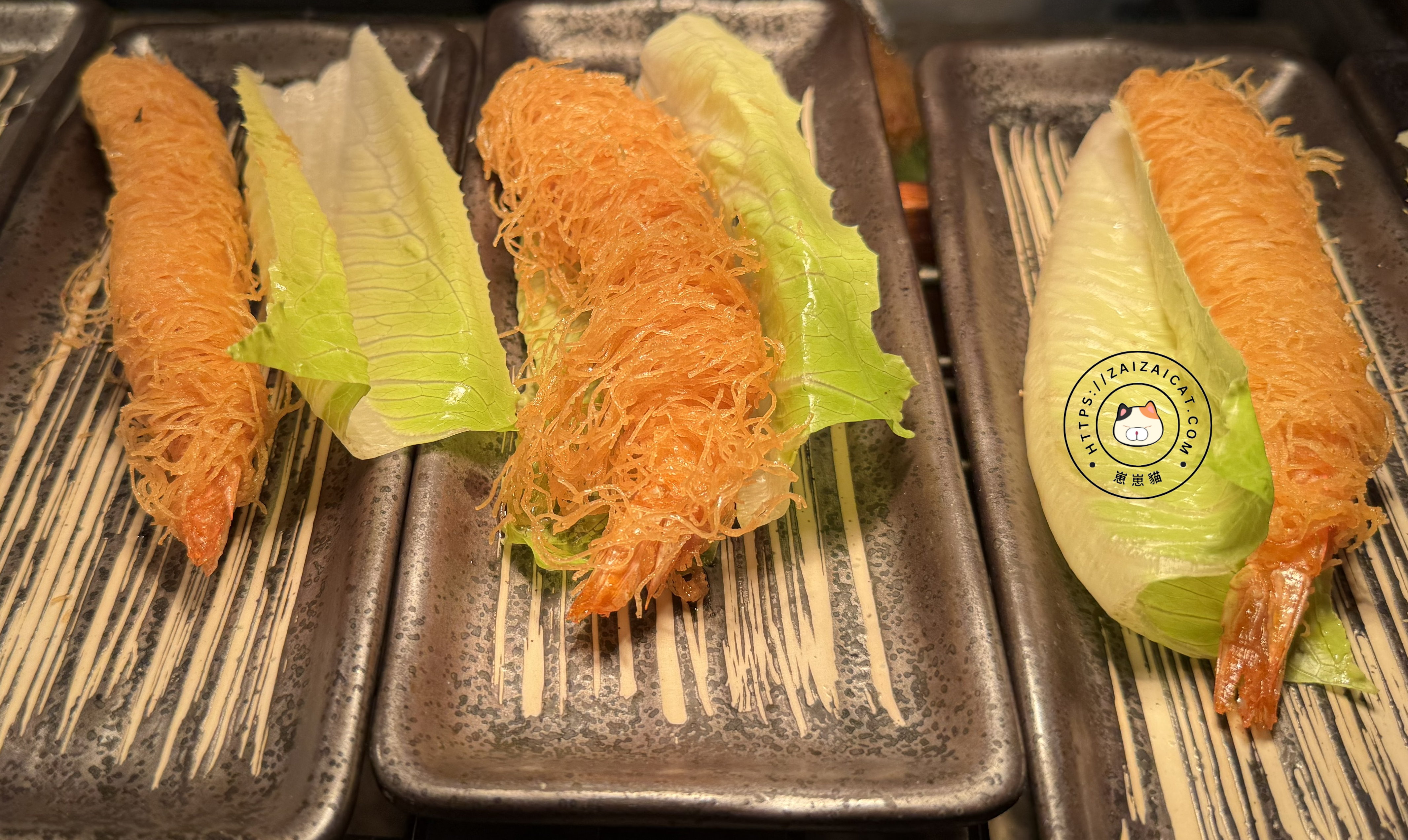 一走近日式烤物與炸物區,就立刻被香味吸引🤤,烤香魚🐟外皮微焦、魚肉細緻鮮甜,完全沒有腥味,超級好吃!炭火烤生蠔🦪更是必試,噴上琴酒後香氣瞬間爆發,鮮嫩多汁。炸物區的炸蝦有兩種,竹炭蝦天婦羅外皮酥薄、蝦肉Q彈;雪絲海老揚裹上細麵線油炸、再淋上泰式甜辣醬 🌶️,香酥微辣、越吃越涮嘴!其他炸物像是炸鮑魚、炸生蠔、炸小卷、炸什錦蔬菜,每一道都炸得外酥內嫩,香氣滿分✨,燒烤和風牛腩條、烤雞腿也是大推,甚至還有大阪經典小吃章魚燒🐙,一顆接一顆停不下來!然後這區搭配的是果醋飲🍹,酸酸甜甜超解膩,吃完炸物來一杯,清爽又解膩,完美!
