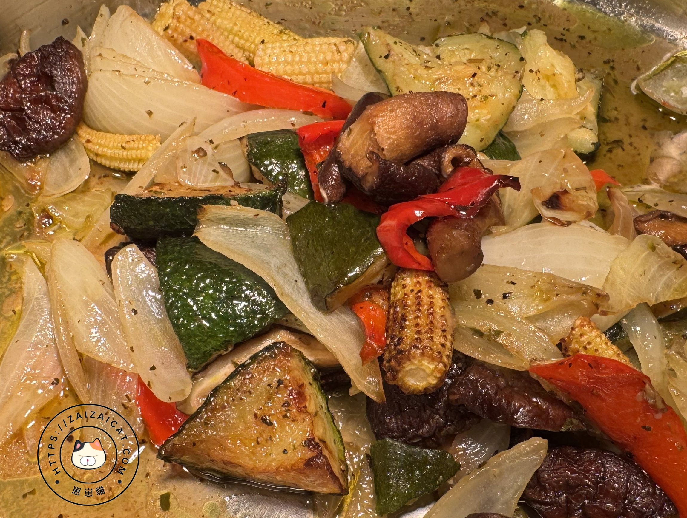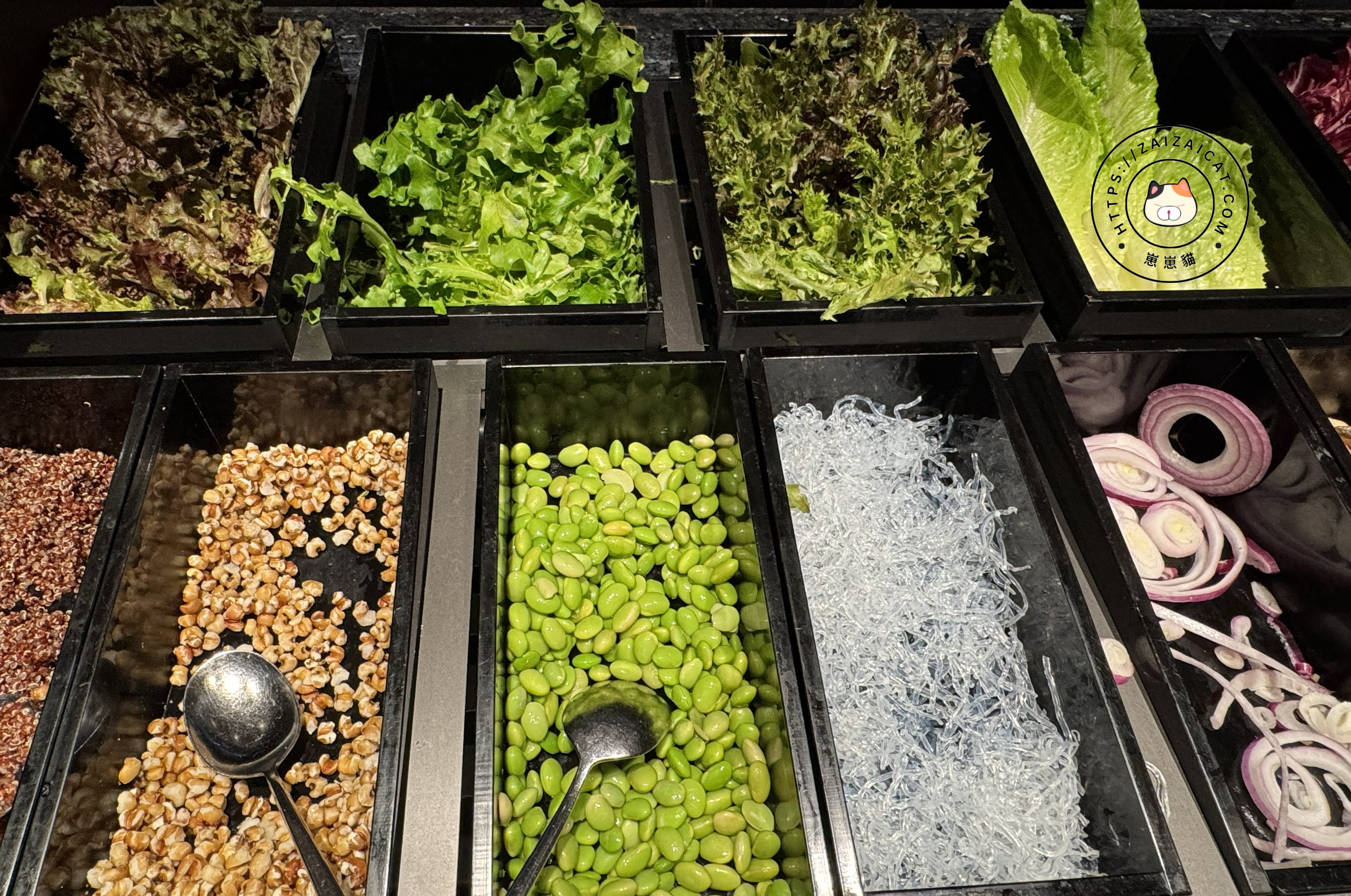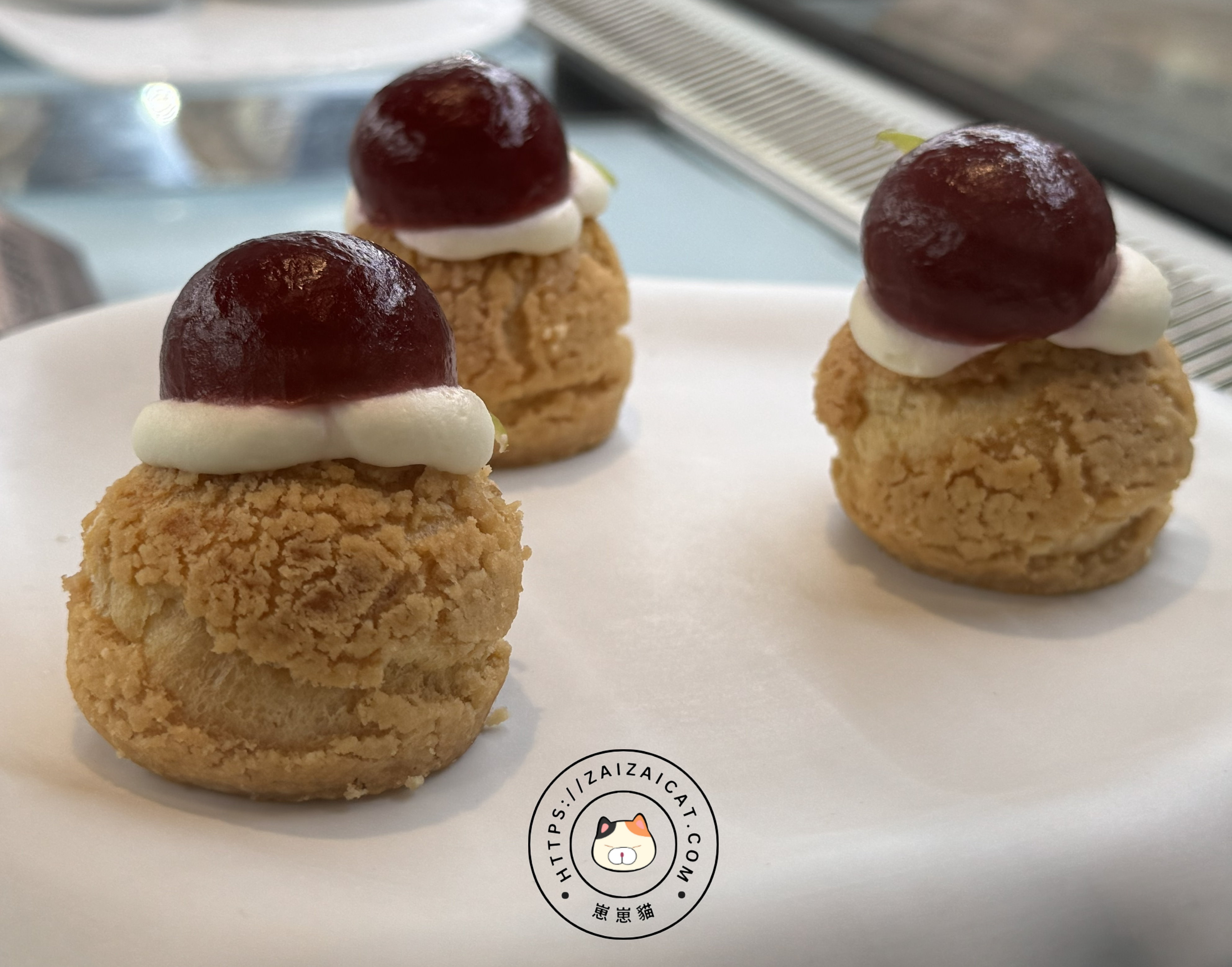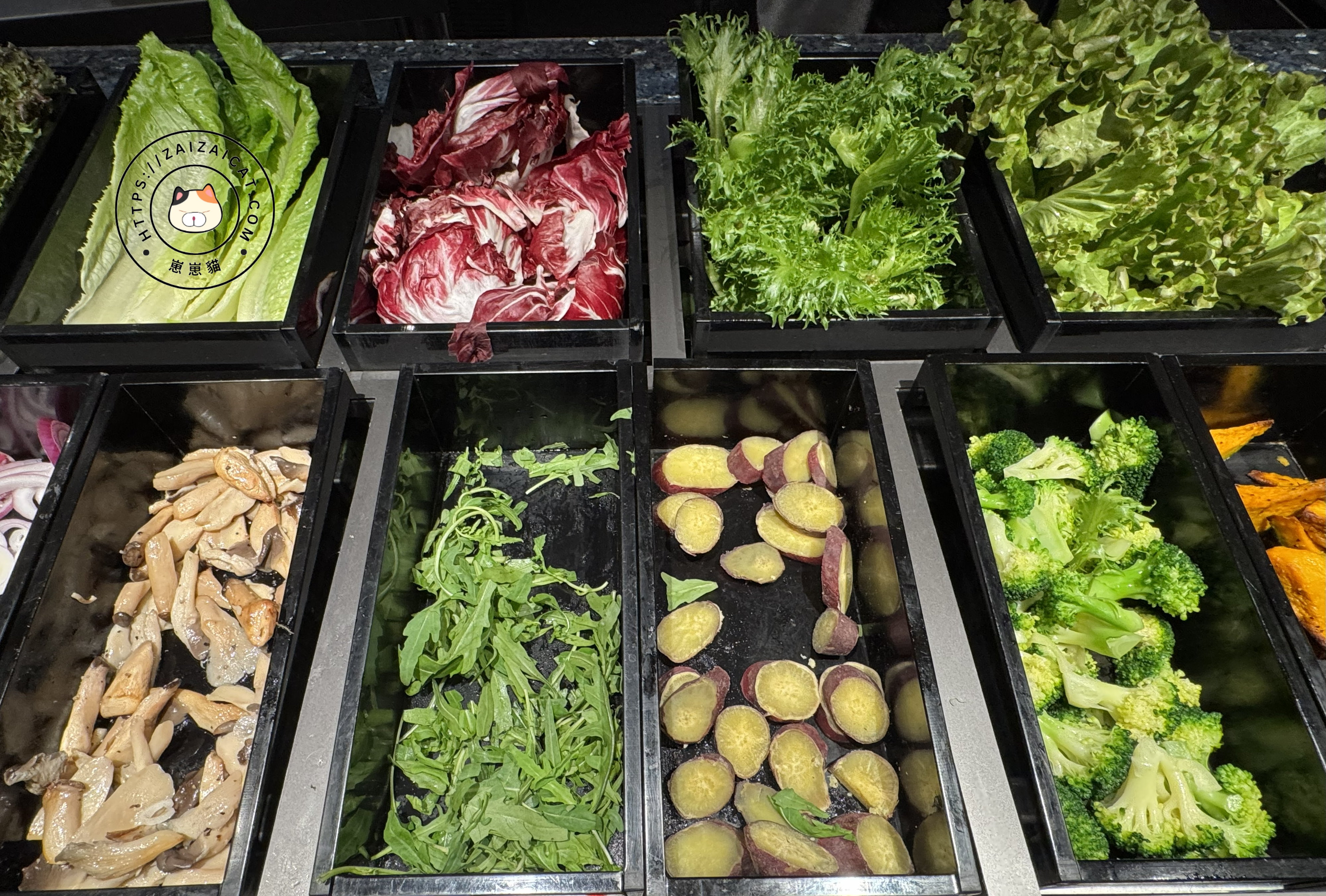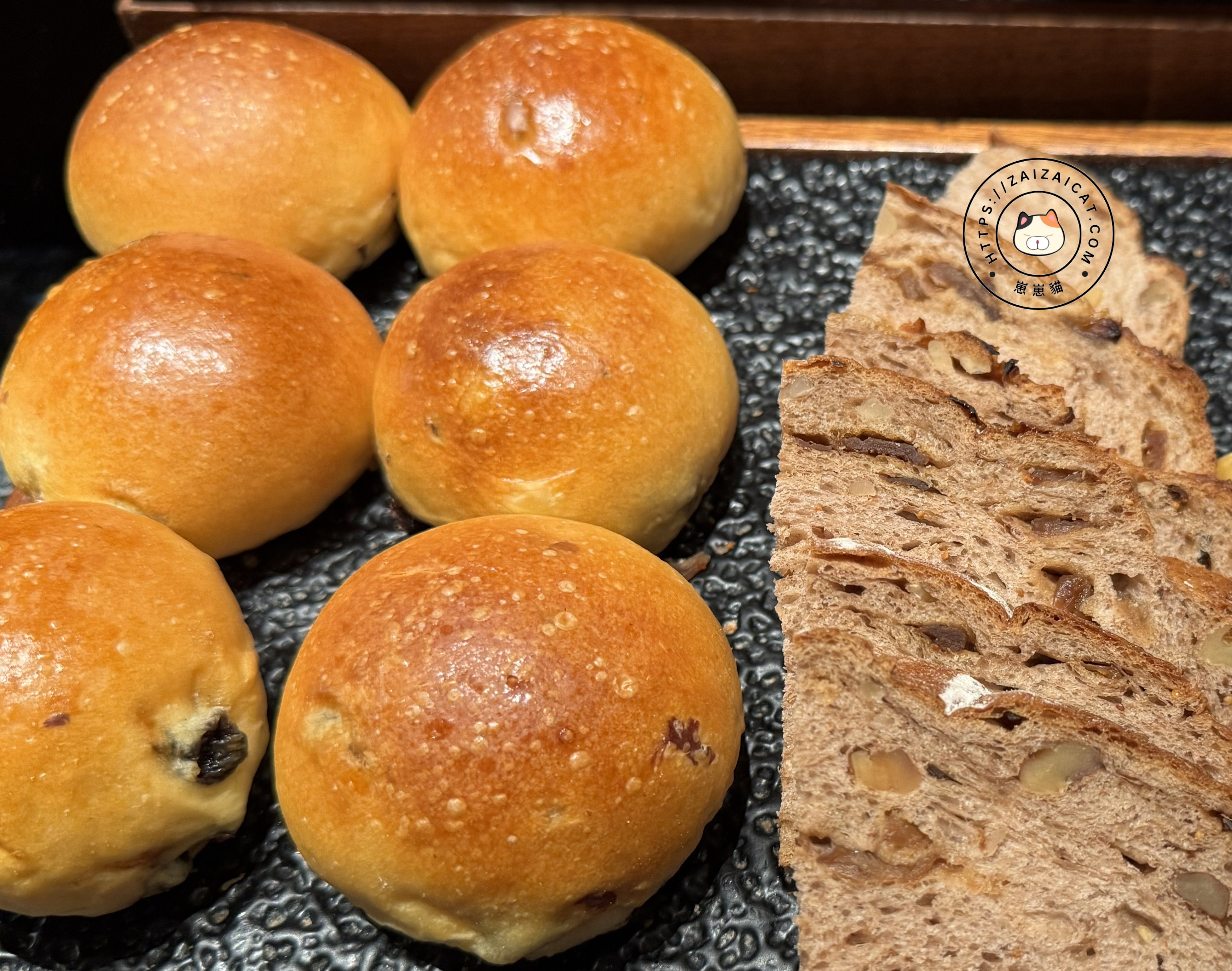 喜歡海鮮的人一定要先衝這區啊~冰檯上滿滿都是新鮮海味 🐚!旁邊的生菜沙拉區也不馬虎 🥗,看起來超翠綠、超新鮮✨,配料跟沙拉醬也很多總類。還有三種肝醬(雖然我不太敢吃🤣),但香氣真的超濃郁。這一區最適合搭配冰冰的白酒 🍷,品牌是ALAMEDA Sauvignon Blanc 白蘇維濃白酒,微酸清爽的口感配上海鮮,超級開胃~🥖 而且一定不能錯過旁邊的麵包區!有各式手作法式麵包、乳酪麵包棒、義式脆餅等等,香氣撲鼻,每一種都想拿來試試。我最喜歡的是那個「包麻糬的麵包」💛,烤過後熱熱的,外酥內軟、還有QQ的嚼感,越吃越香~真的超療癒 😋。