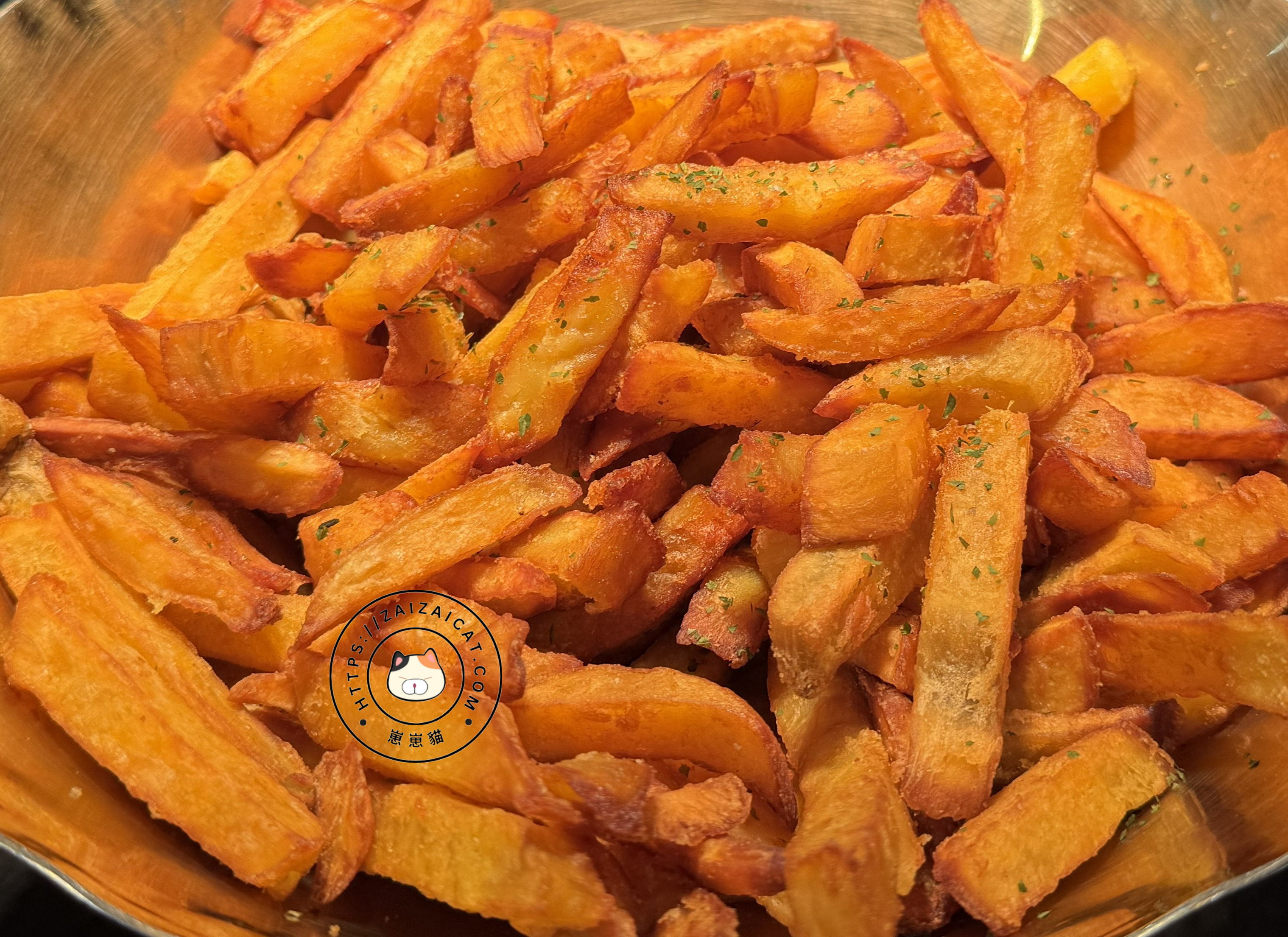 這區主打各式燒烤和鐵板料理🔥,香氣一走近就被吸引!現烤肋眼牛排、明蝦、干貝、迷迭香羊排、戰斧豬排🥩,肉香撲鼻,外層微焦、裡頭多汁,咬下去超滿足!還有法式焗烤田螺以及一些熟食料理,這一區當然少不了紅酒 🍷,品牌是Feliza西班牙紅酒,微酸微澀的口感搭配肉香,完美搭配,還有世界冠軍👑麵包師王鵬傑的小可頌 ,酥香濃郁、層層分明,一口咬下外脆內軟,奶香在嘴裡慢慢化開,真的超級好吃~🍠 還有~這區竟然還藏著我最愛的炸物!有炸地瓜條和炸薯條 🍟,外酥內軟、熱熱吃超香!身為澱粉控的我完全招架不住,真的拿了好多次 😂。