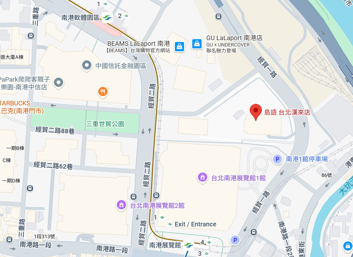 可搭乘捷運至 南港展覽館站(板南線),從 1 號出口步行約 6 分鐘到達。也可至 南港軟體園區站(文湖線)步行前往。