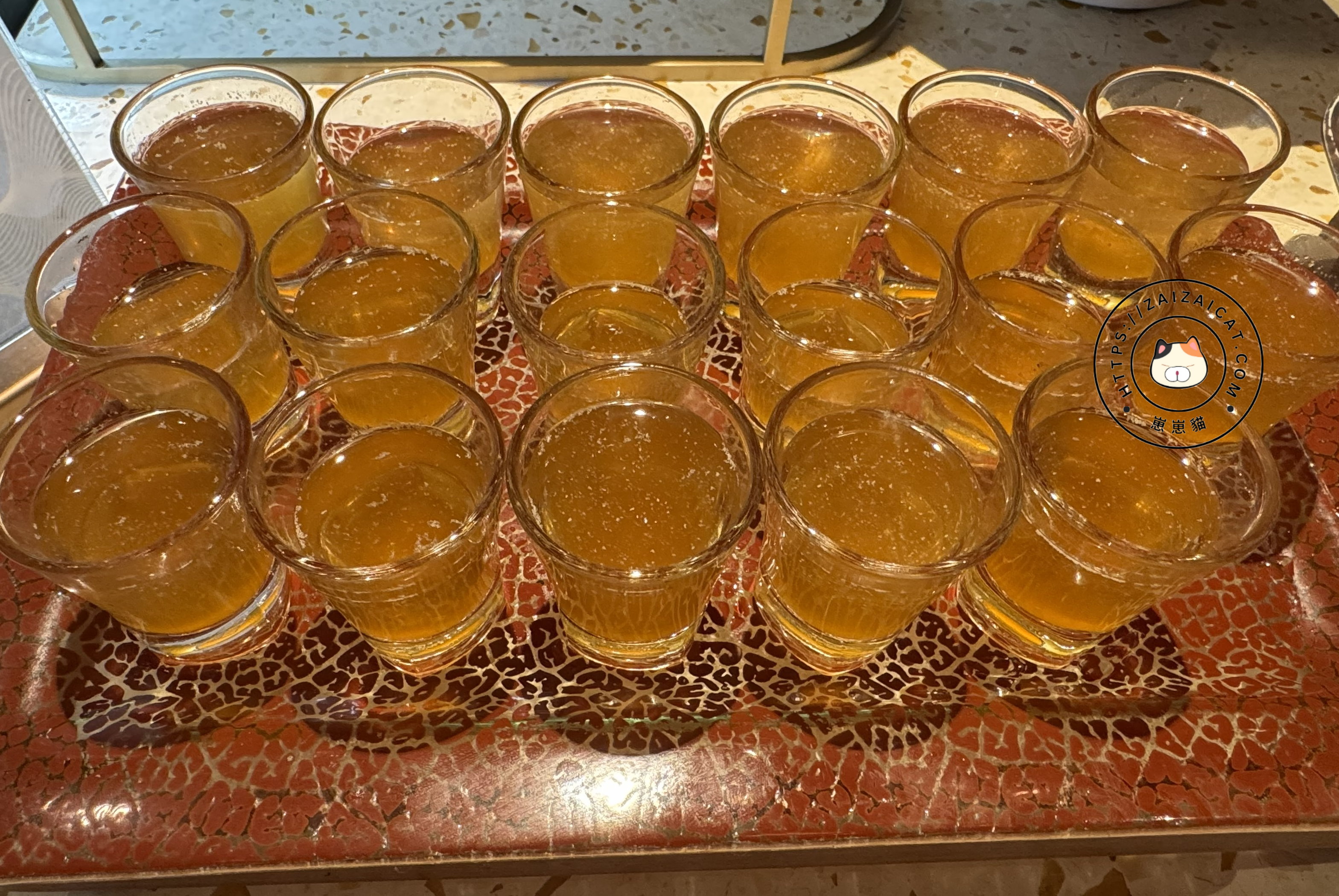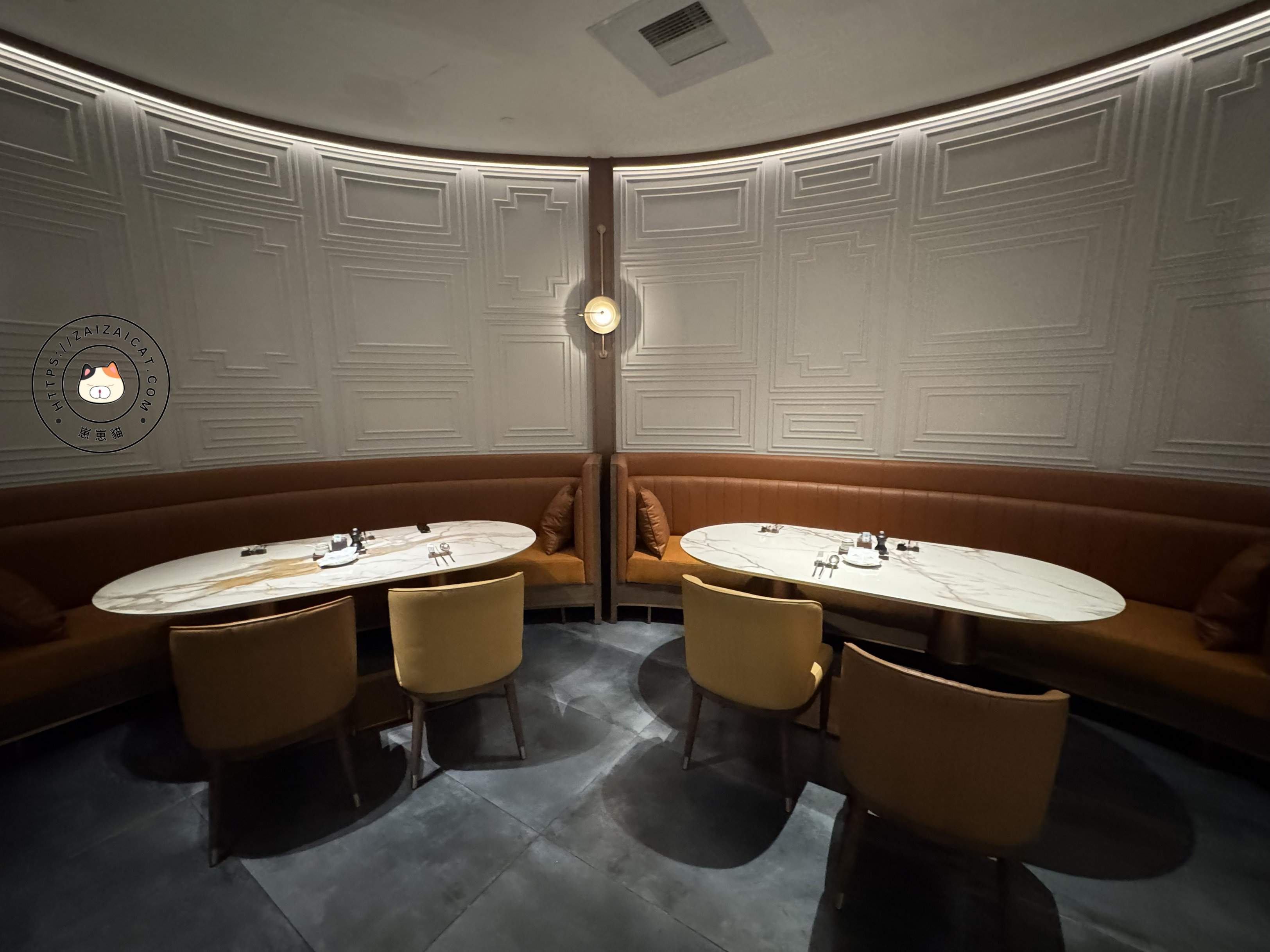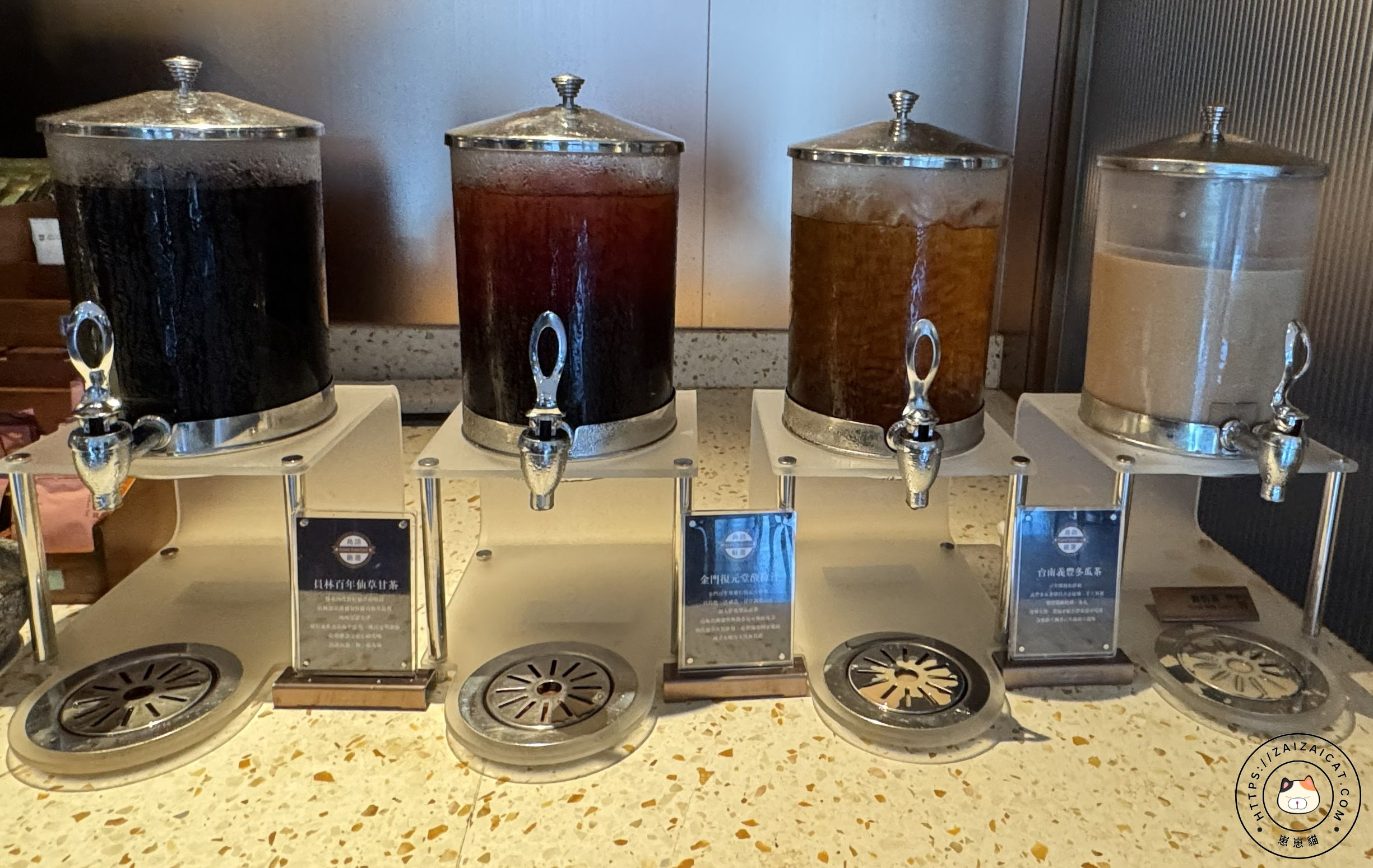 一走進餐廳,第一眼就會看到那個超吸睛的半圓弧形吧台 ✨!這區提供各式飲品,有特調咖啡、茶類、氣泡水還有各種軟性飲料 🧋。咖啡控一定要試試他們家的咖啡!採用百萬級咖啡機搭配世界冠軍咖啡師烘焙的豆子 ☕️,香氣濃郁又順口,真的每一口都喝得出用心 ❤️。這裡的茶葉可是來自海拔2500公尺、傳承五代的「華崗茶莊」精品茶,茶香清新淡雅、口感柔順,超級解膩。