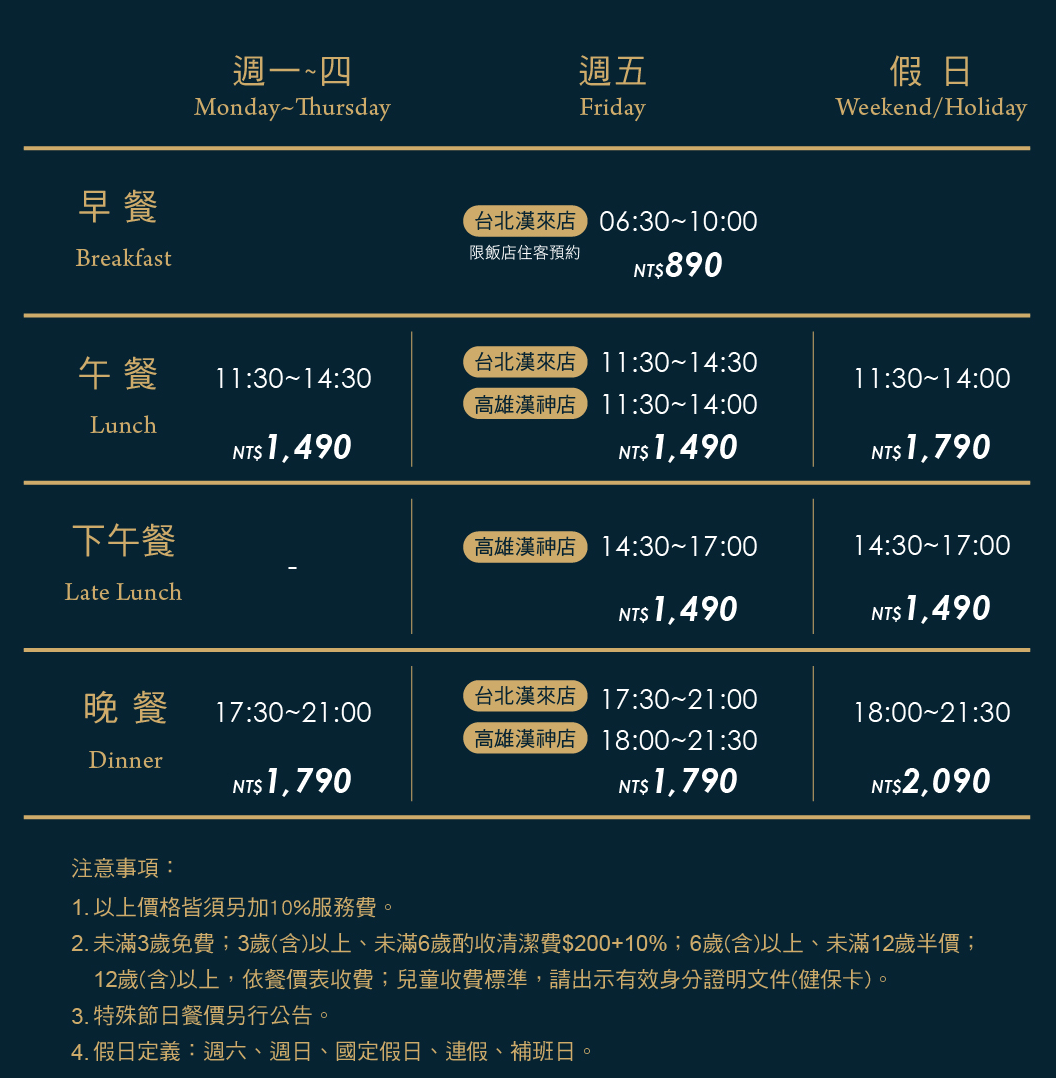 🔸 線上訂位:每月 1 日上午 11 點開放新時段,可以在官方網站或漢來飯店的訂位系統上預約(最多可訂兩個月內的時段)。