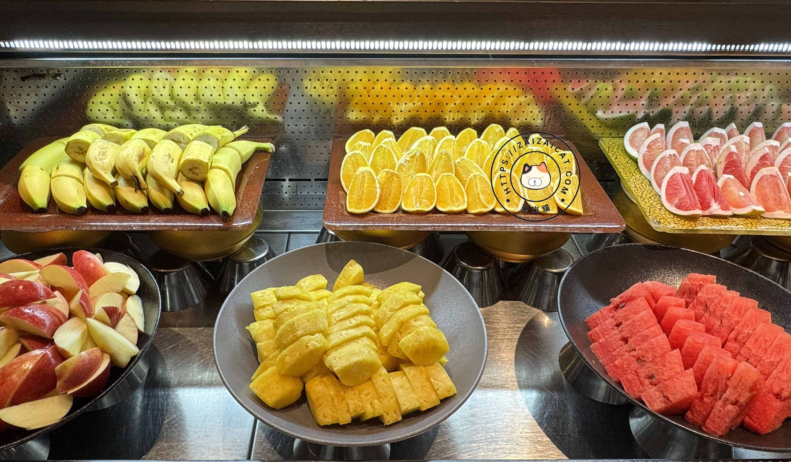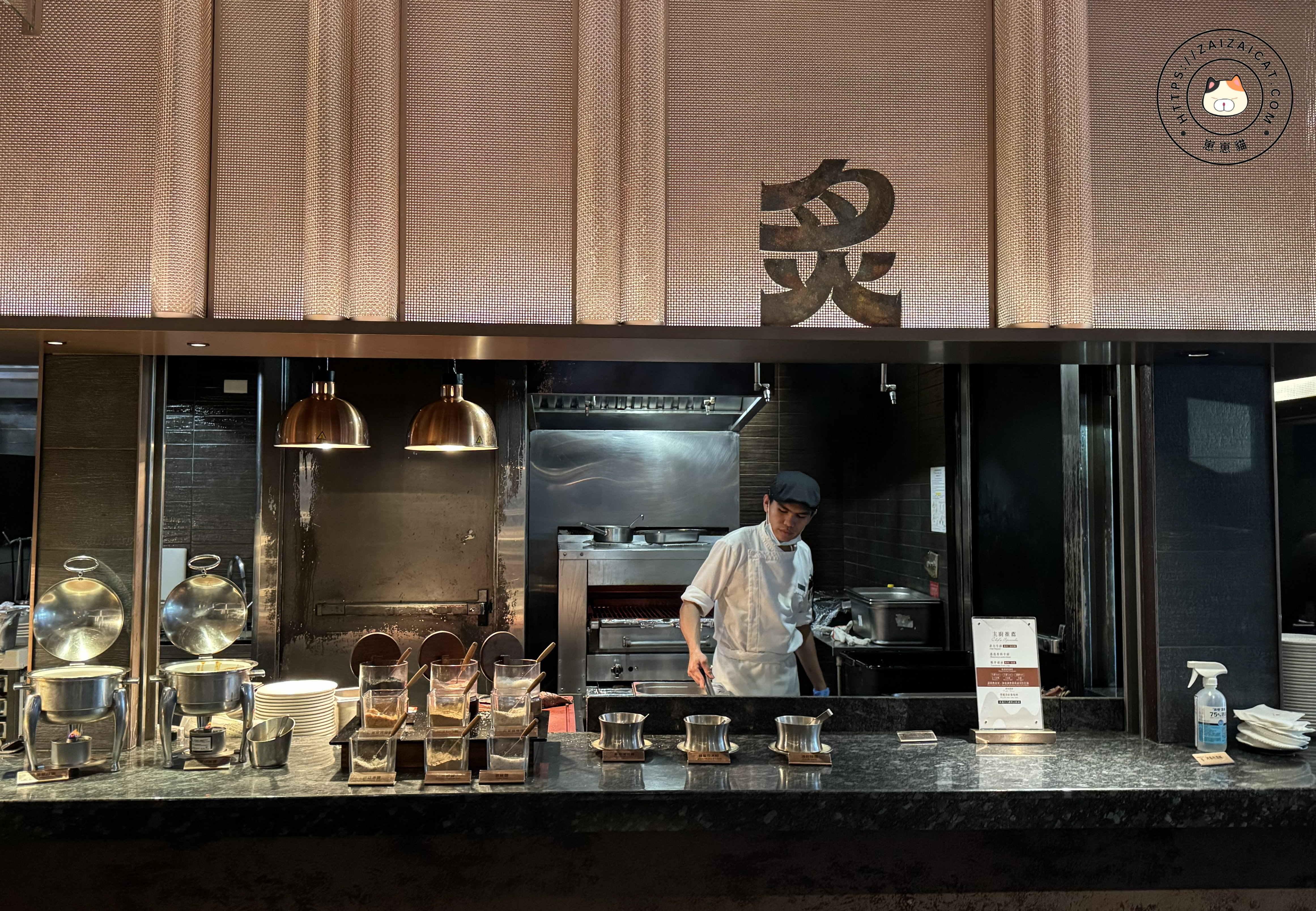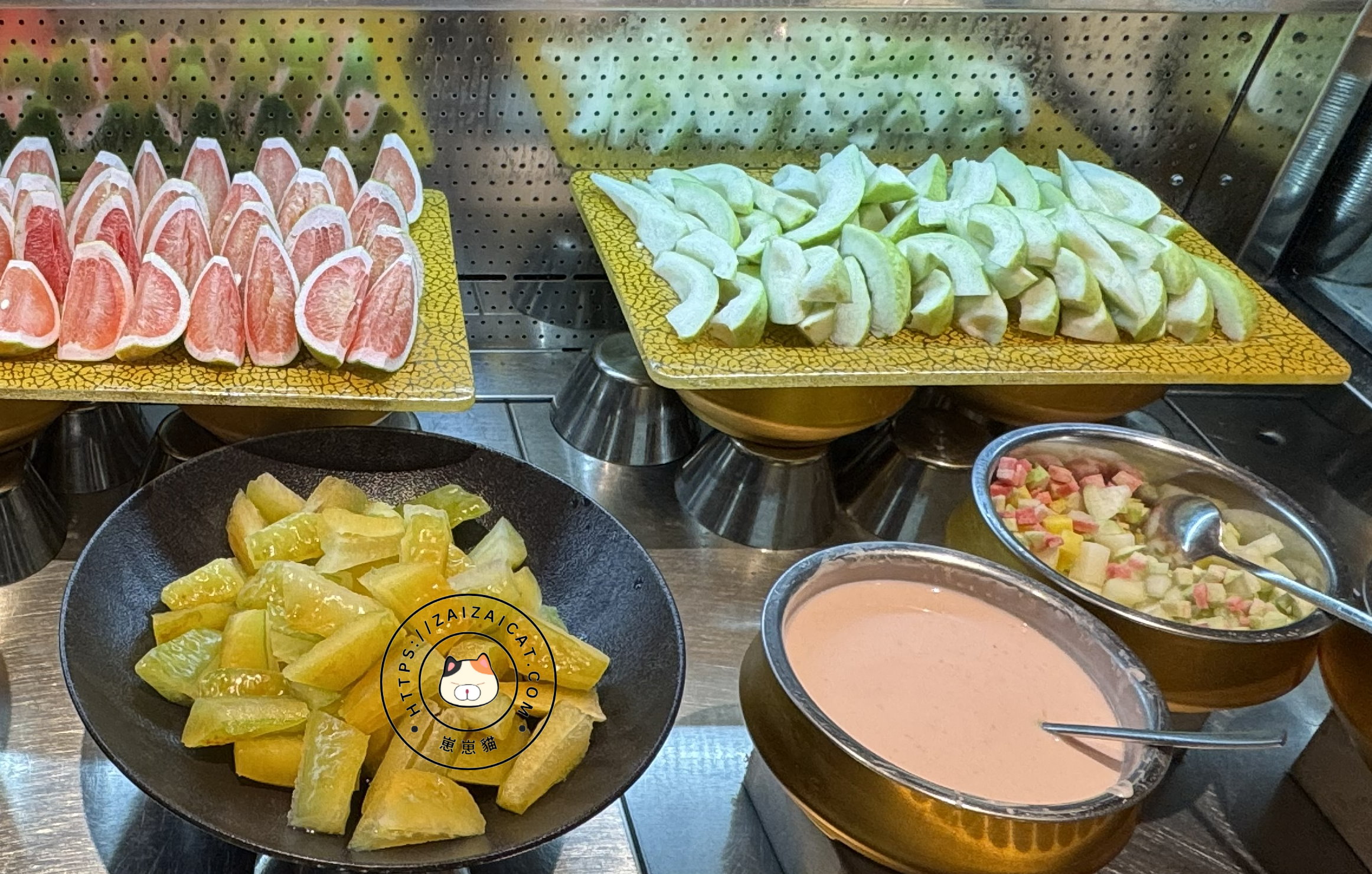 島語自助餐最有特色的地方,就是把取餐區分成八個主題「島檯」🏝️。每一座島檯都像一座小島一樣獨立設計、風格各異,不但好吃也好拍 📸。而且更厲害的是,每一區都有搭配適合的酒款或飲品 🍷,像日料配清酒、海鮮配白酒、烤物配紅酒。島檯的動線是一直線設計,所以取餐動線很順,不太會人擠人 👍。只是我們那天的座位剛好被安排在門口,距離甜點區有一點遠 🍰,每次想吃甜點都得走一小段路(算是吃飯兼運動吧🤣)。